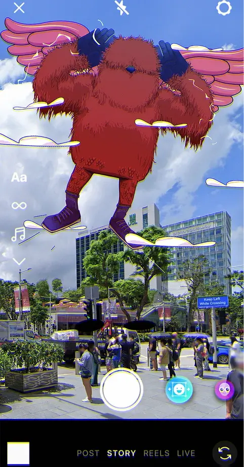 Re-Route Festival AR Monster is an augmented reality experience created as part of Re-Route: Orchard (RROR), a creative festival under Singapore Design Week 2024, organised by PLUS Group Singapore.