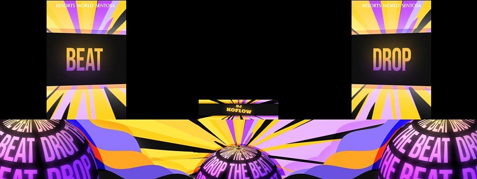 The event visuals were designed to live across three different screen types, each with its own scale, orientation, and viewing distance. From the Main Pool Stage at Bluewater Bay Wave Pool, which featured five coordinated screens, to Bay Level 2 LED screens and the Seahorse | Cool Pool LED screen, each canvas required a tailored visual approach.